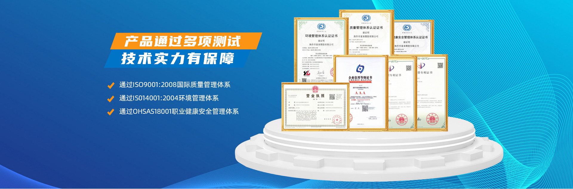 - 焦作市富泉塑膠有限公司,創(chuàng)立于1995年,是一家集研發(fā)、設計、生產、銷售為一體的大型管材企業(yè)。公司位于太極故里、黃河之濱一一河南焦作溫縣。公司占地128畝,現有職工210余人,其中具有中技術職稱的19人。生產、檢驗設備58臺(套),包括PVC實壁管生產線11套、PE實壁管生產線12套、HDPE雙壁波紋管生產線6套、PVC雙壁波紋管生產線5套,檢驗設備14臺(套)。主要產品有:Φ20mm-630mm、各種壓力規(guī)格的PVCU、PVC-M、PE給水管材,PVC-U節(jié)水灌溉管材,HDPE燃氣和礦用管材,DN200-800mm的HDPE、PVC雙壁波紋管及各種噴灌、滴灌工程材料。承接大中型市政供排水、飲水安全及節(jié)水灌溉等工程。 富泉塑膠公司重視產品的質量、安全、環(huán)保和節(jié)能,在同行業(yè)中率先完成了“新華節(jié)水產品認證”,全方面通過ISO9001:2008國際質量管理體系、IS014001:2004環(huán)境管理體系和OHSAS18001職業(yè)健康安全管理體系的一體化導入,并建立起規(guī)范的現代企業(yè)管理體系。公司以“質量”為先導,采用質量跟蹤、多環(huán)節(jié)把關的方法,組建具有行業(yè)水準的企業(yè)技術檢測中心,常年委托水利部節(jié)水灌溉設備檢測中心、河南省產品質量監(jiān)督檢驗院對產品跟蹤檢測,并由中國人民保險公司承保產品質量。公司連續(xù)多年被河南省水利廳確定為“安全飲水設備、節(jié)水灌溉設備”定點生產企業(yè),并獲得“中國名優(yōu)產品”“質量、服務、信譽AAA企業(yè)”“河南省**產品”“河南省水利企業(yè)”“河南省守合同、重信用企業(yè)”等榮譽稱號?! 「蝗苣z公司堅持“用戶為上”的服務理念,長期以來,全方面關注客戶價值,不斷提升服務水平。服務隊伍常年為客戶的產品設計、施工、安裝提供合理的方案和全程細致、周到、**、快捷的技術服務。公司自成立以來,一直堅持以人為本的宗旨,塑造企業(yè)形象,并致力于新產品的開發(fā),憑借雄厚的技術開發(fā)能力,先進的工藝制造流程,嚴格的質量管理保證體系,優(yōu)良的售后服務網絡,已成為河南省大的飲水、灌溉及排水管材設備制造商。產品暢銷全國,而且還以公司雄厚的綜合實力在業(yè)界中占據著重要的地位。